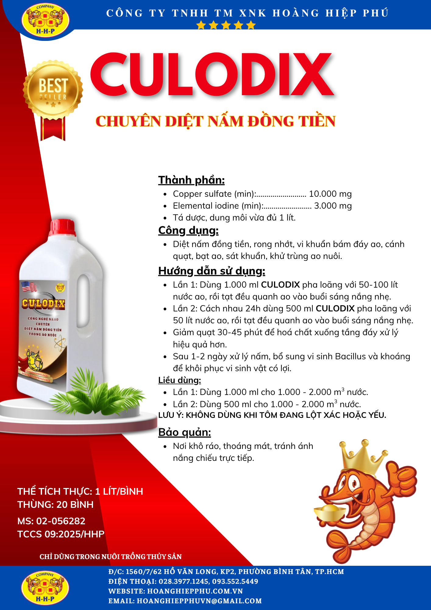 Lần 1: Dùng 1000 ml Culodix pha loãng với 50-100 lít nước ao, rồi tạt đều quanh ao vào buổi sáng nắng nhẹ.
